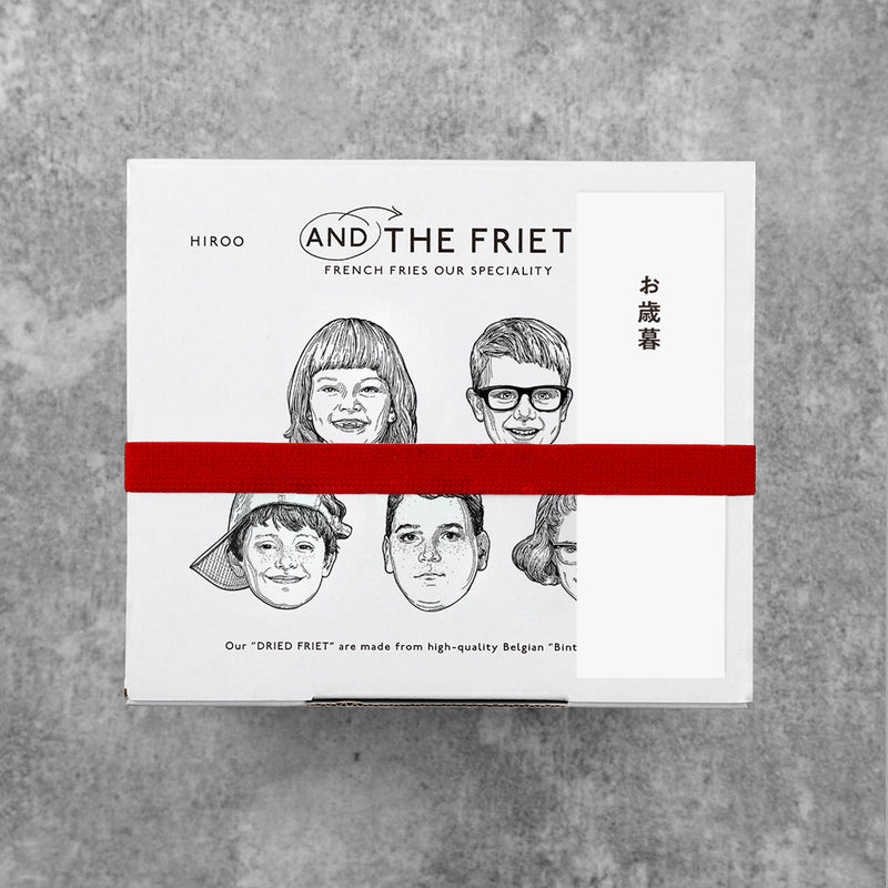 ご自宅での食べくらべやちょっとしたギフト、お配り用にも活躍するボックスです。AND THE FRIETがこだわって世界各国から選び抜いたじゃがいもを使い、じっくり丁寧に仕上げることで、素材のおいしさをギュッと引き出しました。平林奈緒美氏が手がけるパッケージとAnje Jager氏のイラストで、手に取った方が笑顔になるちょっと特別な一品に仕上がっています。