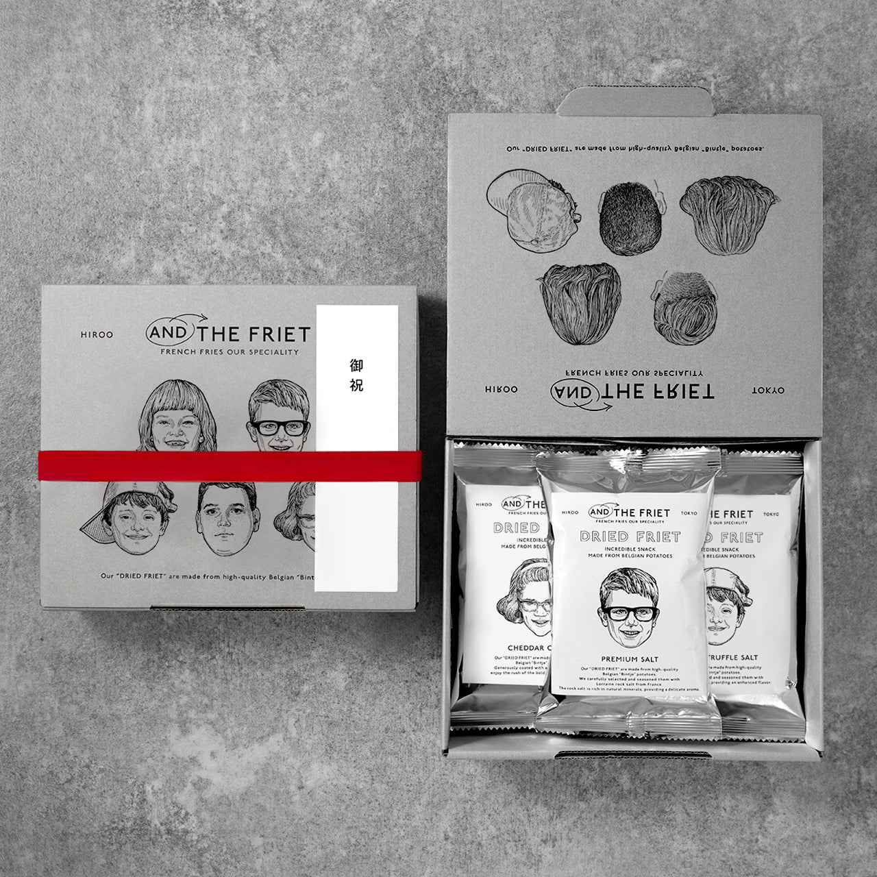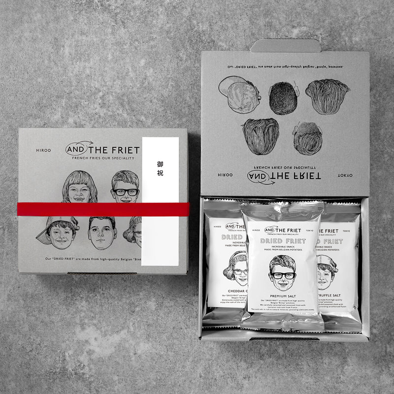 人気フレーバーを食べくらべできるだけでなく、ちょっとした手土産やお配り用にぴったりな一品です。5種を各1〜2袋ずつ配る楽しみ方もおすすめ。 AND THE FRIETがこだわって世界各国から選び抜いたじゃがいもを使い、じっくり時間をかけてサクサク食感に仕上げています。 アートディレクター平林奈緒美氏とイラストレーターAnje Jager氏によるデザインも目を引くポイント。気軽に贈れて、どんな場面でもきっと喜ばれます。