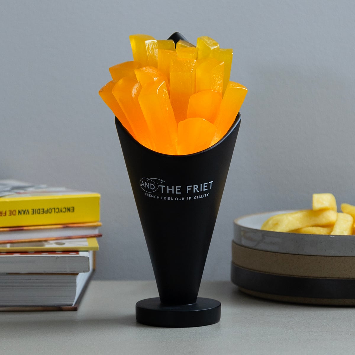 AND THE FRIETの象徴であるフレンチフライのビジュアルがそのまま実物サイズのLEDランプになりました。