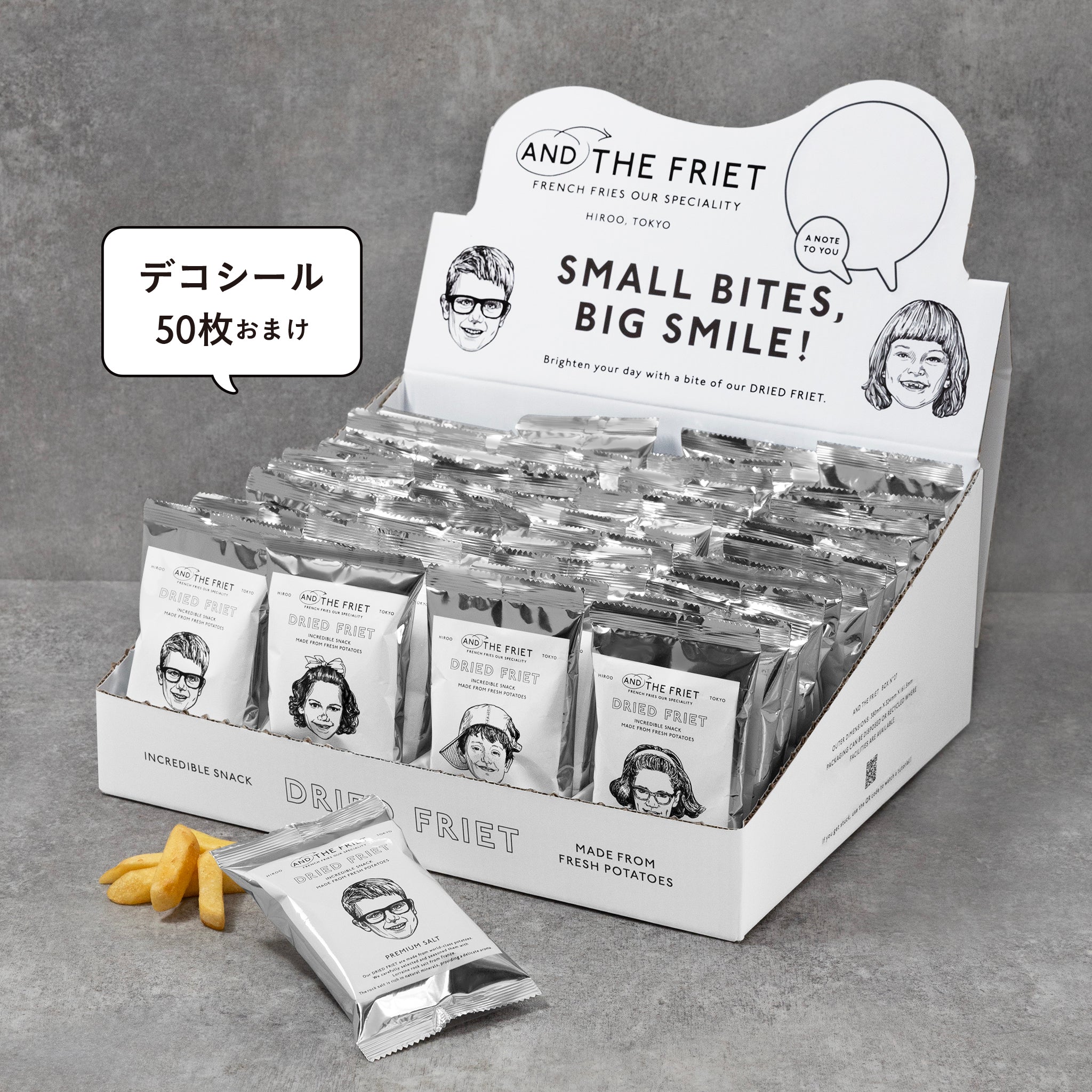 見た目にもリッチで眺めるだけでもワクワクするような、ボリューム満点のボックスです。AND THE FRIETがこだわって世界各国から選び抜いたじゃがいもを使い、一つひとつじっくり丁寧に仕上げることで、サクサクとした食感と旨みを引き出しています。