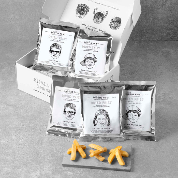 レギュラー個包装を10個詰め合わせたギフトボックスが新登場。SOUR CREAM AND DILLを含む3種類のフレーバーを楽しめるセットと、単一フレーバーのみのセットをご用意しました。3人のキャラクターがデザインされたオリジナルボックス入りなのでギフトにも最適です。