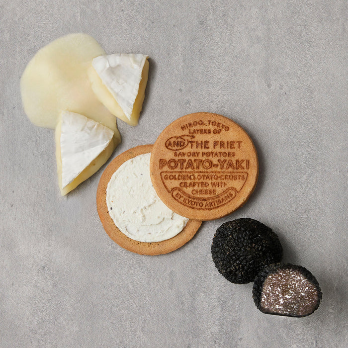 サクッと軽やかな歯ごたえの生地には、黒トリュフの風味豊かなカマンベールチーズクリームをサンドしました。一日に焼ける枚数には限りがあるため、一部店舗のみの完全数量限定発売。
